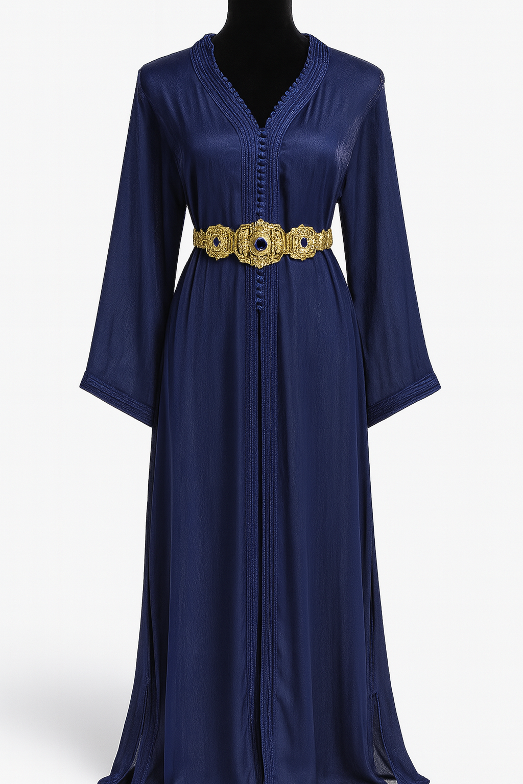Détails : Ceinture simple ton sur ton incluse – Ceinture dorée (en option) pour une touche royale